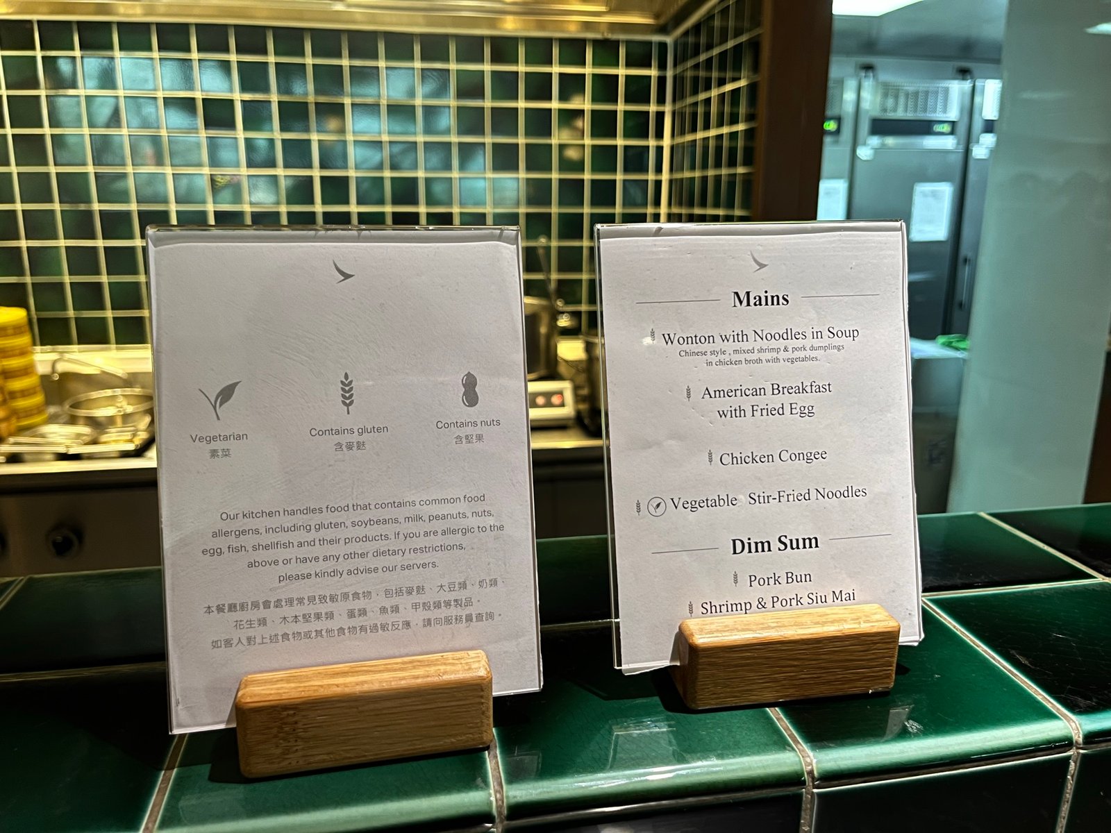 As is the case at most of Cathay Pacific’s lounges, you’ll the Noodle Bar. It’s a simple, but really good concept. You can choose the items you’d like from the menu and you’re then given a buzzer. When your meal is ready it’ll start flashing and you can pick it up. This time, I was visiting during the morning, so was able to choose from the breakfast menu.
