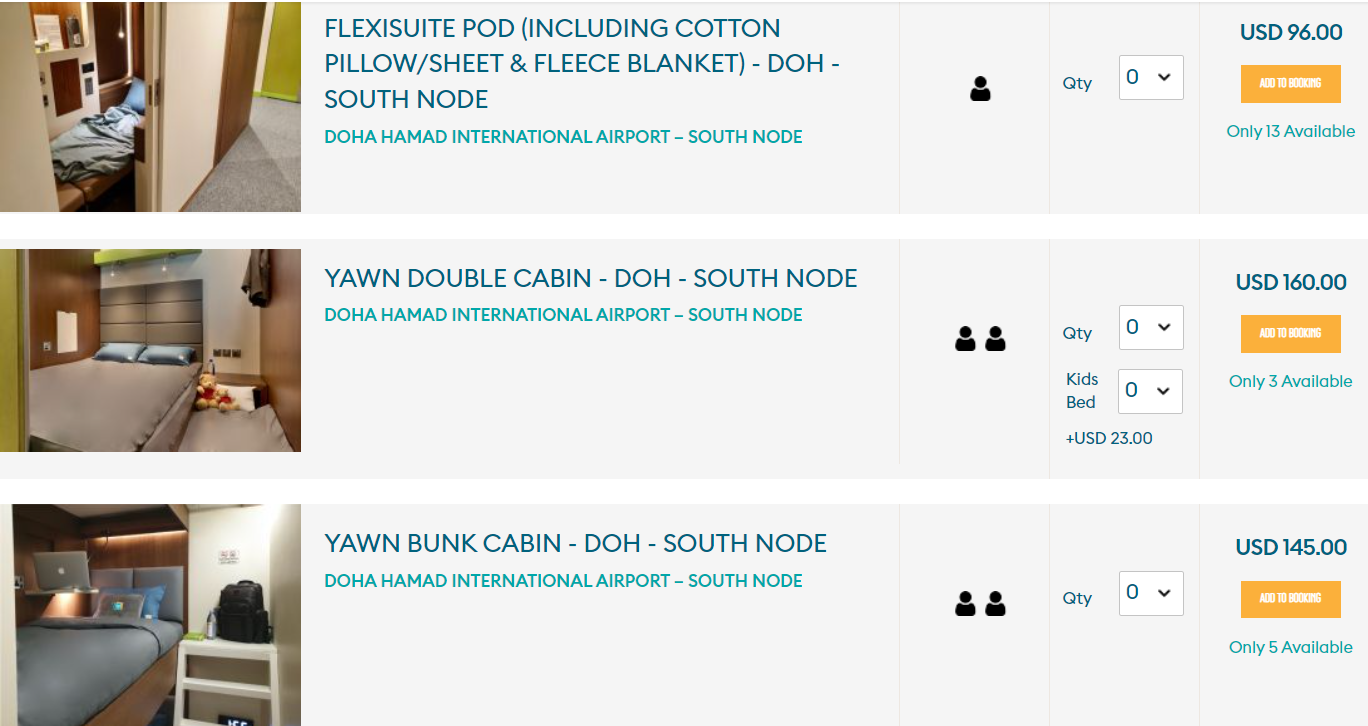 As an example, if you wanted to book an overnight (8 hour) stay the price would be $145 for a single cabin, rising to $231 for the bunkbeds. Of course, you could leave the airport and head into Doha itself where you would find much more budget friendly options, but I really didn’t want to leave the airport.