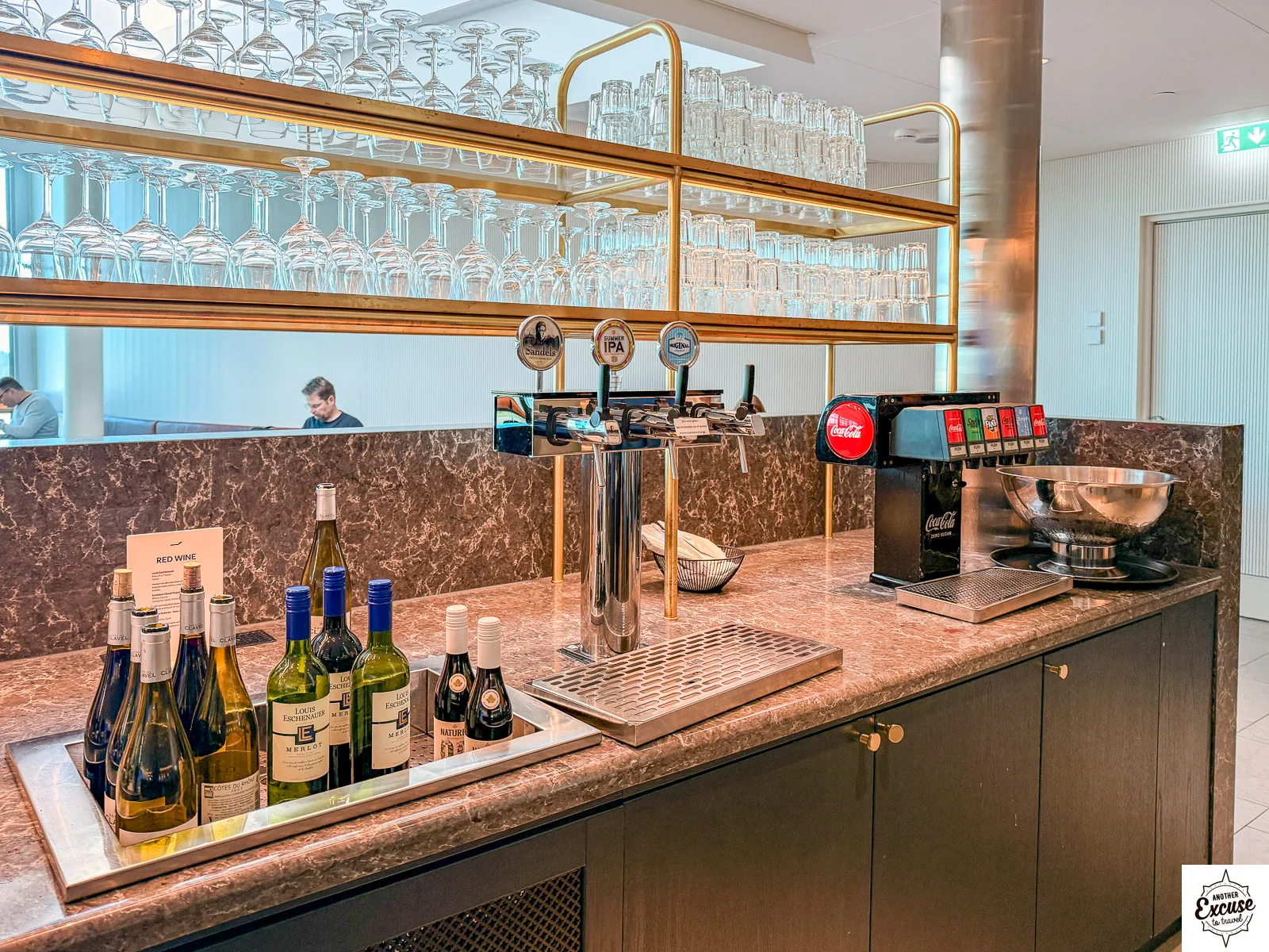 Unlike in their non-Schengen lounge, there isn’t a staffed bar. Instead, there are a selection of different self-serve beer and wine options. There’s no champagne, but there are a couple of sparkling options to choose from too. I tried a couple of different wines, and both were fine.