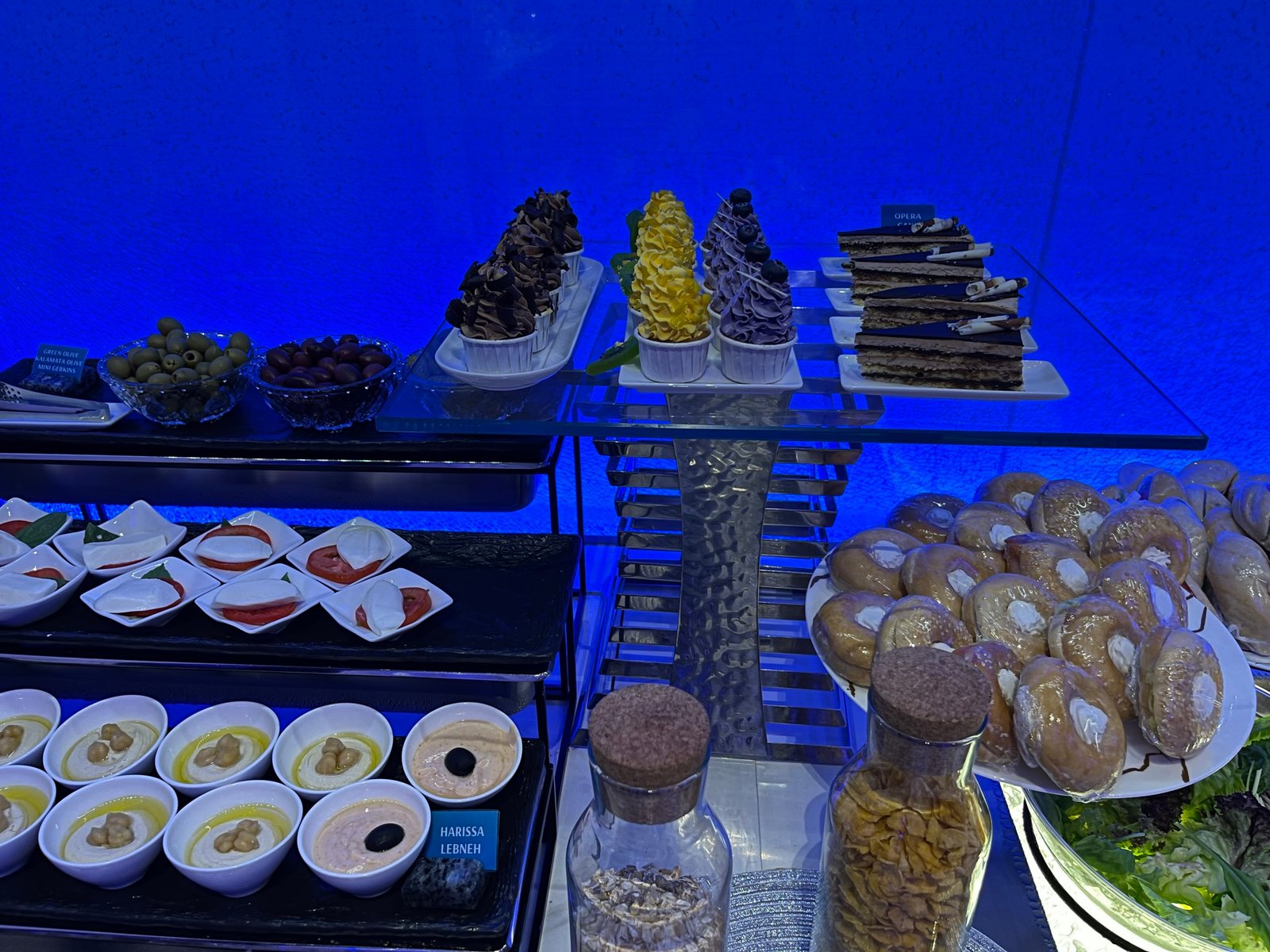 Additionally, there were a number of cold options, including cheeses, hummus and some fancy looking cakes.