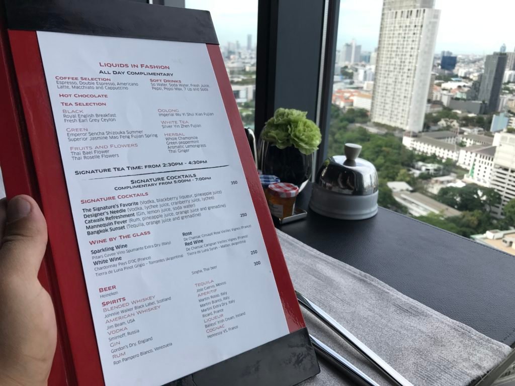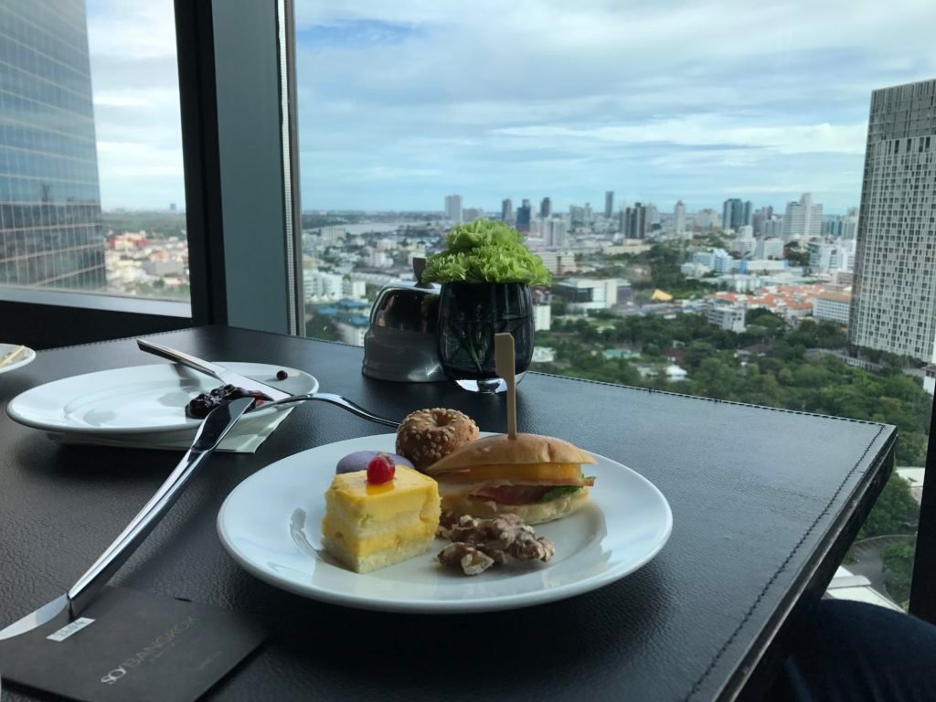 If you’re staying in a Club room or higher, or are a Le Club Accor Platinum member, you’ll have access to the Club Millesime Lounge on the 25th floor. In our case, the latter applied, and we were impressed by the service.Β The staff in the lounge were superb. During the day from 6.30am to 10.30am breakfast is provided, between 2.30pm and 4.30pm afternoon tea, and between 5pm and 7pm evening cocktails and canapes. We were impressed by all three of these, and particularly enjoyed the evening drinks, with views of the sunset over Bangkok.