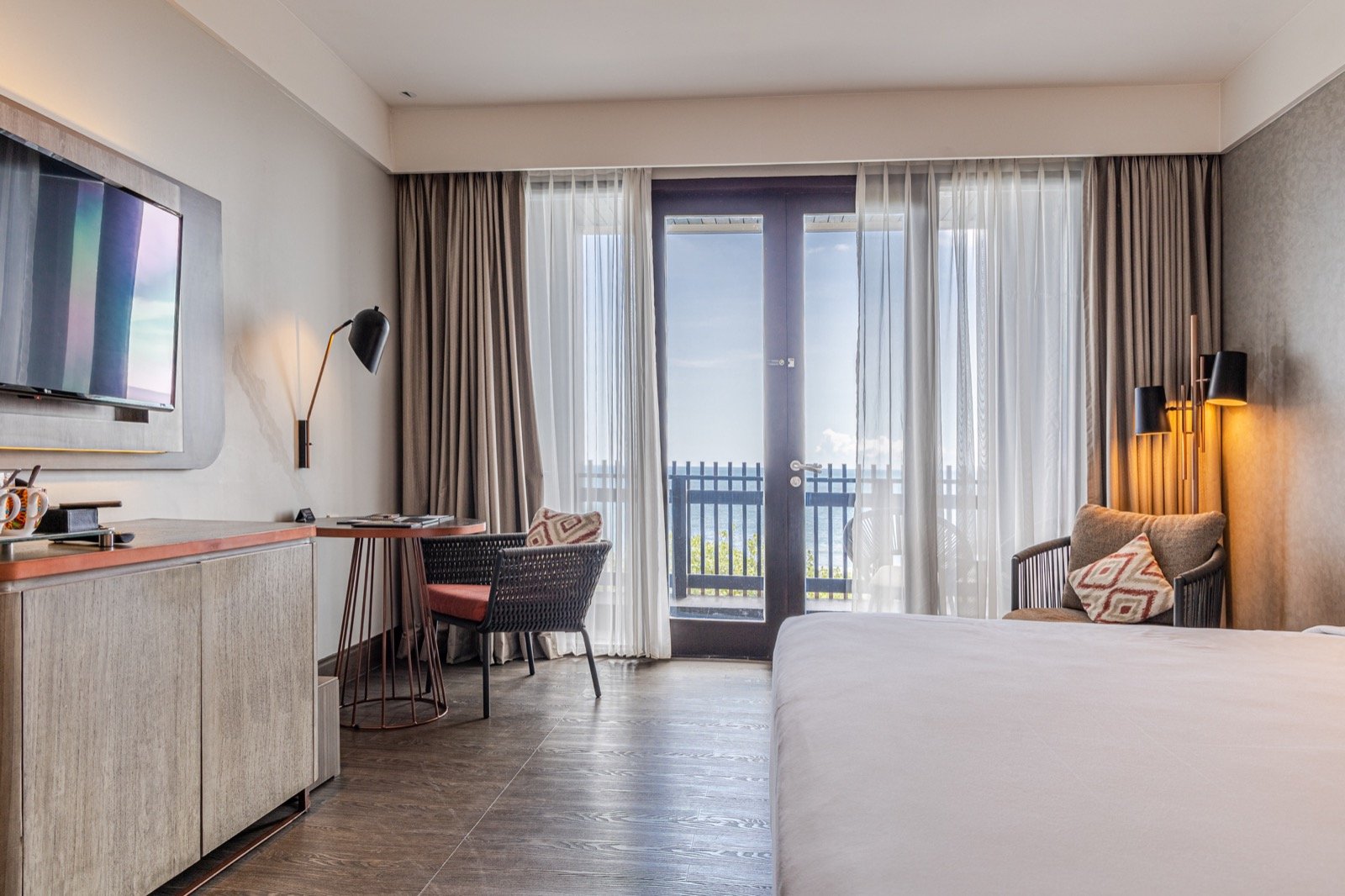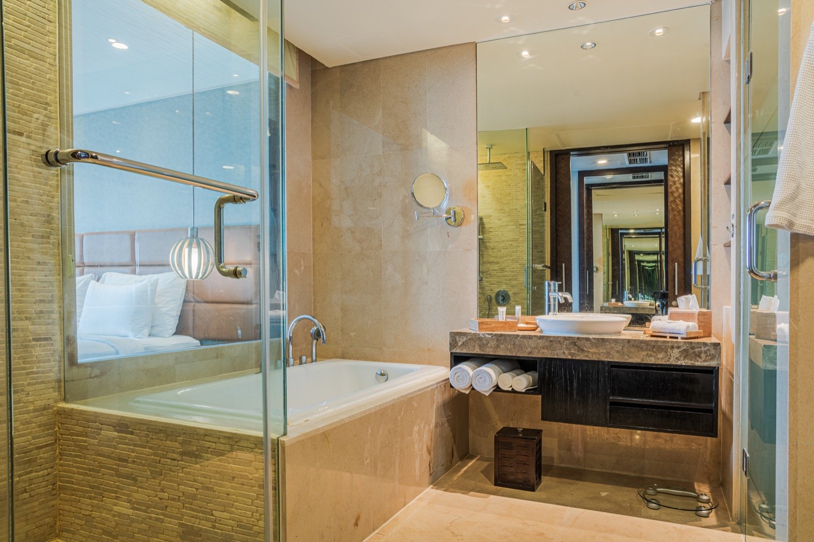 The room we were allocated was excellent. The standard of furnishing and the finishing touches were great. The view was also impressive, especially during sunset. The bathroom was particularly well appointed, including a rain shower and separate bathtub.